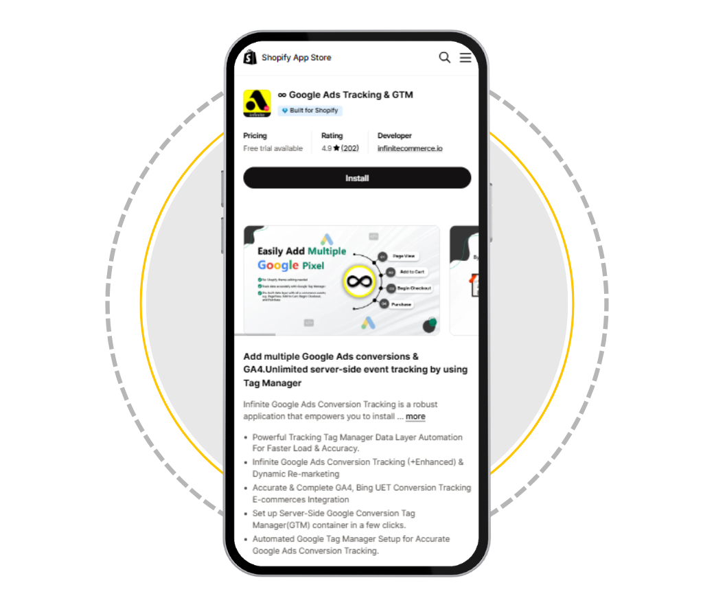 Find Infinite Google Ads Tracking in the Shopify App Store and install it with one click.